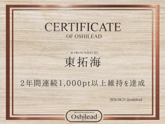 オシリートップ20平野紫耀1,540,584ptアイドル1位神宮寺勇太1,330,974ptアイドル2位岸優太1,322,538ptアイドル3位佐藤新239,610ptアイドル4位三宅健98,067ptアイドル5位大東立樹46,439pt俳優1位横原悠毅23,010ptアイドル6位岩橋玄樹18,457ptアイドル7位北山宏光16,449ptアイドル8位影山拓也15,946ptアイドル9位妃那子14,099ptアーティスト1位鈴木大河13,742ptアイドル10位神谷浩史12,245pt声優1位髙橋海人12,175ptアイドル11位播磨かな11,853ptアイドル12位鈴木愛奈11,345pt声優2位椿泰我11,271ptアイドル13位近藤孝行10,942pt声優3位髙野 秀侑10,901ptアイドル14位陽月るるふ10,248ptVTuber1位