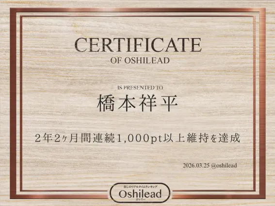 オシリートップ20平野紫耀1,570,066ptアイドル1位神宮寺勇太1,424,497ptアイドル2位岸優太1,395,740ptアイドル3位佐藤新247,066ptアイドル4位三宅健103,535ptアイドル5位大東立樹43,991pt俳優1位椿泰我26,543ptアイドル6位横原悠毅23,220ptアイドル7位岩橋玄樹18,714ptアイドル8位北山宏光16,395ptアイドル9位影山拓也15,412ptアイドル10位陽月るるふ14,872ptVTuber1位妃那子13,747ptアーティスト1位髙橋海人13,739ptアイドル11位鈴木大河13,640ptアイドル12位神谷浩史13,402pt声優1位播磨かな12,918ptアイドル13位鈴木愛奈11,848pt声優2位髙野 秀侑10,795ptアイドル14位近藤孝行10,369pt声優3位