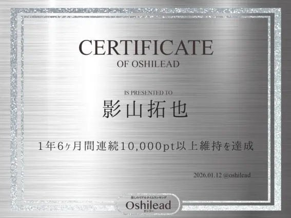 オシリートップ20平野紫耀1,635,471ptアイドル1位神宮寺勇太1,460,439ptアイドル2位岸優太1,442,168ptアイドル3位佐藤新256,529ptアイドル4位三宅健102,752ptアイドル5位大東立樹45,266pt俳優1位椿泰我27,720ptアイドル6位横原悠毅25,569ptアイドル7位影山拓也24,856ptアイドル8位岩橋玄樹16,662ptアイドル9位妃那子15,335ptアーティスト1位北山宏光15,138ptアイドル10位髙橋海人14,646ptアイドル11位日和ゆず13,443pt俳優2位神谷浩史13,013pt声優1位鈴木愛奈12,901pt声優2位播磨かな12,894ptアイドル12位鈴木大河12,064ptアイドル13位近藤孝行11,041pt声優3位髙野 秀侑10,866ptアイドル14位