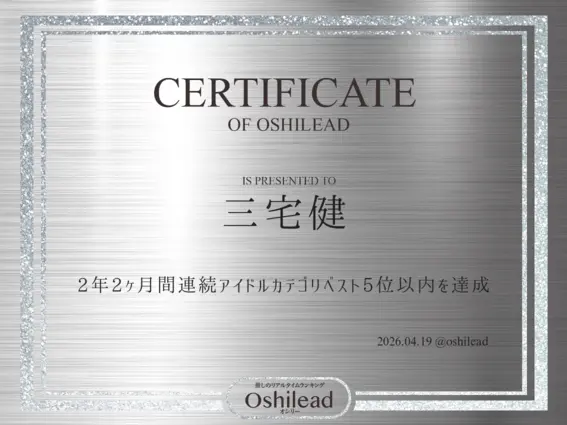 オシリートップ20平野紫耀1,531,477ptアイドル1位神宮寺勇太1,373,706ptアイドル2位岸優太1,328,175ptアイドル3位佐藤新250,408ptアイドル4位三宅健102,928ptアイドル5位大東立樹48,893pt俳優1位横原悠毅24,176ptアイドル6位岩橋玄樹19,298ptアイドル7位北山宏光16,756ptアイドル8位影山拓也15,967ptアイドル9位妃那子13,876ptアーティスト1位鈴木大河13,767ptアイドル10位神谷浩史12,845pt声優1位髙橋海人12,575ptアイドル11位播磨かな12,455ptアイドル12位椿泰我11,894ptアイドル13位近藤孝行11,546pt声優2位鈴木愛奈11,161pt声優3位陽月るるふ10,383ptVTuber1位髙野 秀侑10,370ptアイドル14位