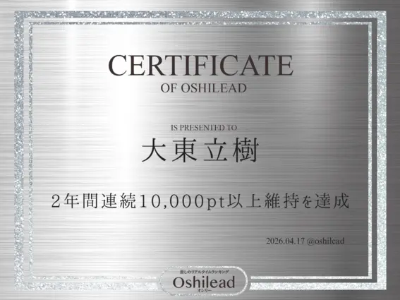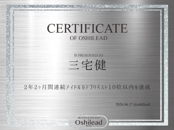オシリートップ20平野紫耀1,548,352ptアイドル1位神宮寺勇太1,368,150ptアイドル2位岸優太1,327,759ptアイドル3位佐藤新250,408ptアイドル4位三宅健102,747ptアイドル5位大東立樹47,608pt俳優1位横原悠毅23,830ptアイドル6位岩橋玄樹18,817ptアイドル7位北山宏光16,941ptアイドル8位影山拓也15,844ptアイドル9位妃那子14,309ptアーティスト1位播磨かな14,128ptアイドル10位鈴木大河13,800ptアイドル11位椿泰我12,935ptアイドル12位髙橋海人12,683ptアイドル13位神谷浩史12,437pt声優1位鈴木愛奈11,405pt声優2位近藤孝行11,065pt声優3位陽月るるふ10,849ptVTuber1位髙野 秀侑10,260ptアイドル14位