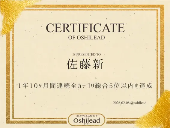推しパワー急上昇佐藤新 (+2,277pt)260,126ptアイドル4位近藤孝行 (+882pt)11,809pt声優3位髙橋海人 (+665pt)14,650ptアイドル11位小野大輔 (+556pt)7,172pt声優4位天城サリー (+375pt)3,950ptその他1位鈴木大河 (+322pt)12,196ptアイドル13位神谷浩史 (+244pt)13,118pt声優1位岩橋玄樹 (+229pt)19,205ptアイドル9位ドナルドダック (+202pt)2,702ptキャラクター2位播磨かな (+189pt)14,393ptアイドル12位村田雨月 (+179pt)5,364ptキャラクター1位松井奏 (+175pt)5,021ptアイドル18位谷山紀章 (+144pt)970pt声優40位基俊介 (+127pt)4,964ptアイドル21位宇髄天元 (+125pt)1,090ptキャラクター4位伊藤詩乃 (+116pt)933ptアイドル47位永瀬廉 (+116pt)8,221ptアイドル15位キズナアイ (+114pt)1,141ptVTuber8位潤羽るしあ (+104pt)104ptVTuber9位原菜乃華 (+104pt)2,301pt俳優5位