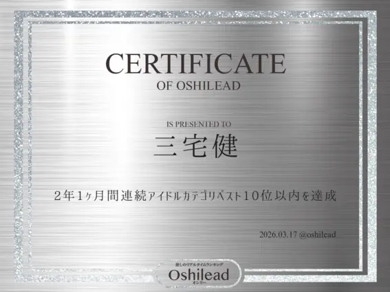オシリートップ20平野紫耀1,578,088ptアイドル1位神宮寺勇太1,428,463ptアイドル2位岸優太1,421,565ptアイドル3位佐藤新256,057ptアイドル4位三宅健105,263ptアイドル5位大東立樹44,538pt俳優1位椿泰我24,710ptアイドル6位横原悠毅23,286ptアイドル7位岩橋玄樹18,326ptアイドル8位影山拓也17,211ptアイドル9位北山宏光15,847ptアイドル10位播磨かな15,179ptアイドル11位髙橋海人13,933ptアイドル12位鈴木大河13,757ptアイドル13位神谷浩史13,360pt声優1位妃那子13,340ptアーティスト1位鈴木愛奈12,402pt声優2位日和ゆず11,976pt俳優2位陽月るるふ11,267ptVTuber1位髙野 秀侑10,834ptアイドル14位