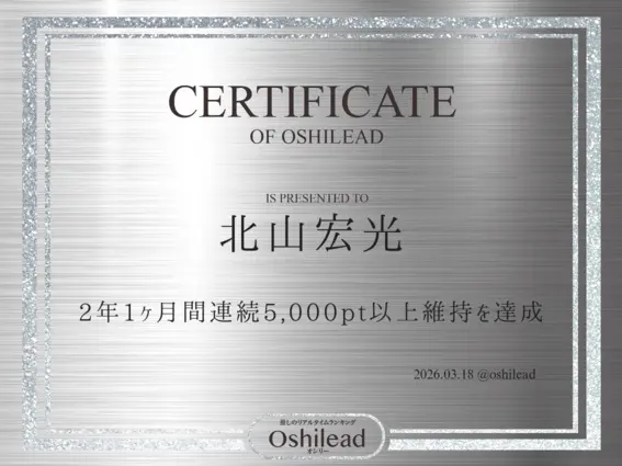 オシリートップ20平野紫耀1,568,292ptアイドル1位神宮寺勇太1,434,592ptアイドル2位岸優太1,422,320ptアイドル3位佐藤新255,063ptアイドル4位三宅健105,410ptアイドル5位大東立樹44,325pt俳優1位椿泰我25,699ptアイドル6位横原悠毅23,120ptアイドル7位岩橋玄樹18,279ptアイドル8位影山拓也16,950ptアイドル9位北山宏光16,088ptアイドル10位播磨かな14,169ptアイドル11位髙橋海人13,820ptアイドル12位鈴木大河13,733ptアイドル13位妃那子13,540ptアーティスト1位神谷浩史13,225pt声優1位鈴木愛奈12,397pt声優2位陽月るるふ12,031ptVTuber1位日和ゆず11,247pt俳優2位髙野 秀侑10,582ptアイドル14位