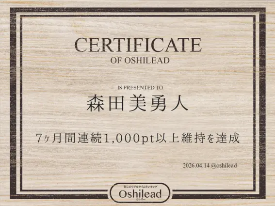 推しパワー急上昇髙野 秀侑 (+1,027pt)10,901ptアイドル14位村田雨月 (+364pt)5,166ptキャラクター1位ドナルドダック (+311pt)2,978ptキャラクター2位近藤孝行 (+294pt)10,942pt声優3位伊藤詩乃 (+189pt)924ptアイドル45位LE’V (+174pt)1,500ptアーティスト9位藤井流星 (+146pt)4,471ptアイドル21位愛来 (+143pt)665ptアイドル47位羽澄和奏 (+133pt)1,043ptアイドル43位森田美勇人 (+131pt)2,645ptアーティスト6位梅岡希 (+120pt)5,829pt声優6位松田岳 (+105pt)778pt俳優18位東拓海 (+97pt)1,445pt俳優7位鈴木大河 (+96pt)13,742ptアイドル10位古川慎 (+95pt)2,802pt声優10位轟焦凍 (+94pt)96ptキャラクター7位田中樹 (+84pt)4,326ptアイドル22位松永依織 (+84pt)6,854ptアーティスト3位里菜 (+83pt)1,165ptアイドル39位小野大輔 (+82pt)6,225pt声優5位